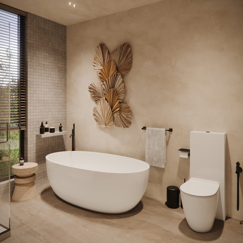At the structure finishing stage, this exquisite villa is set to be completed by the end of 2024. The property will be sold with Chanote, freehold title through the Company, ensuring full ownership and security. The payment plan is designed to be flexible, making the purchase process seamless. This turnkey villa features a modern open plan design, including a state-of-the-art kitchen equipped with all essential appliances, elegant decorations, and air conditioning throughout. It offers two spacious bedrooms plus an office, ensuring ample space for work and relaxation. The villa boasts a private pool and en-suite bathrooms for each bedroom, plus an additional guest bathroom, providing both luxury and convenience.