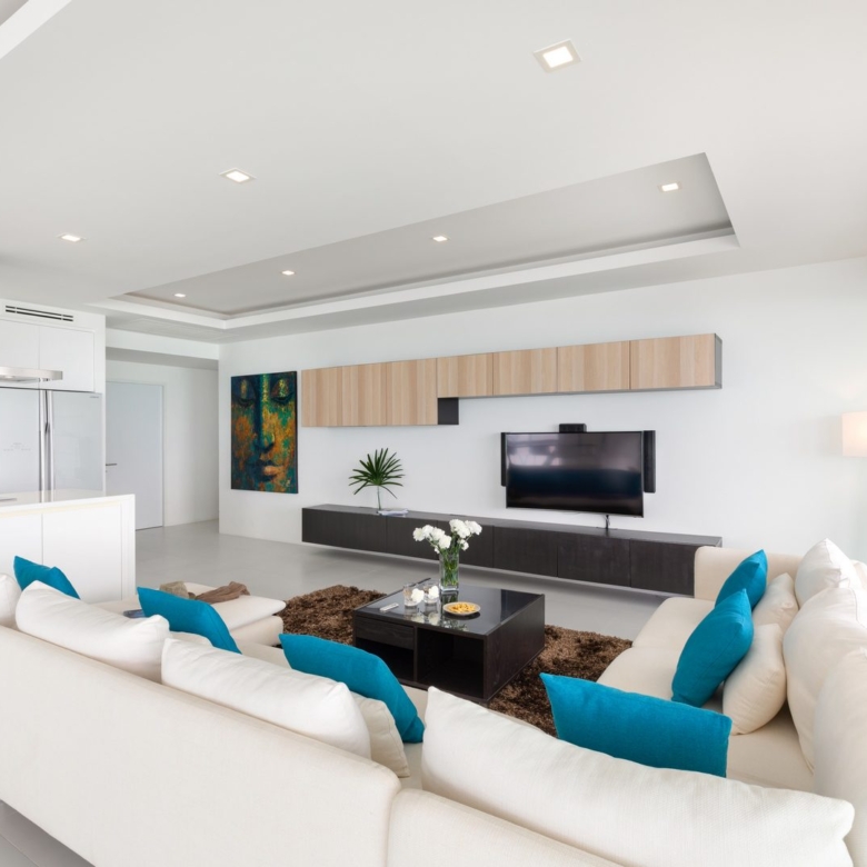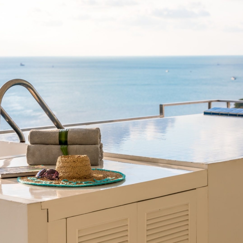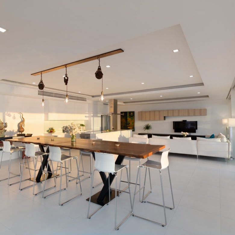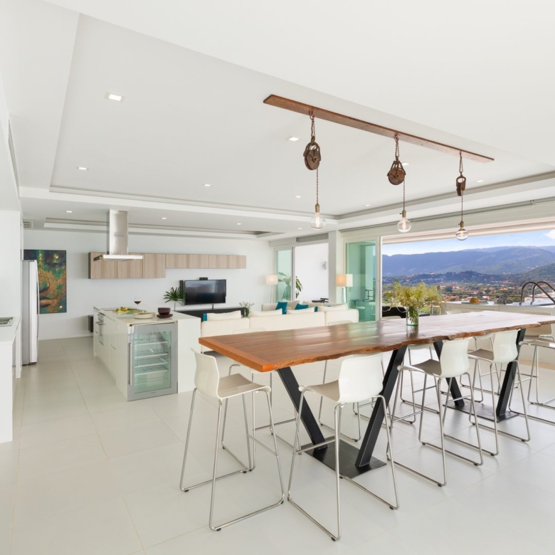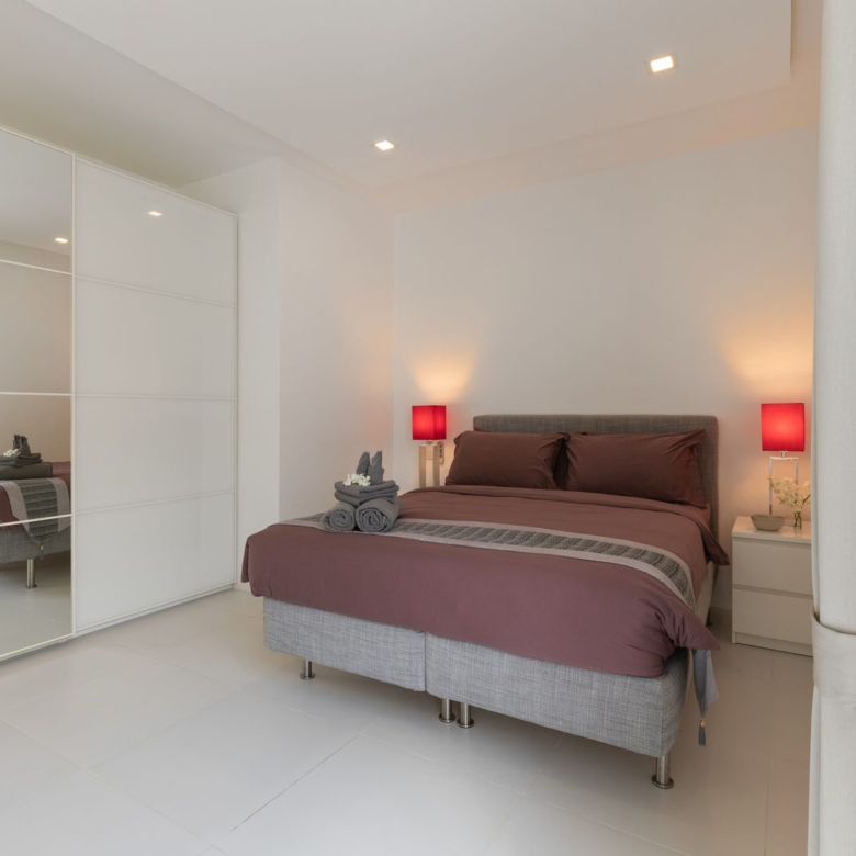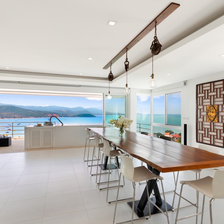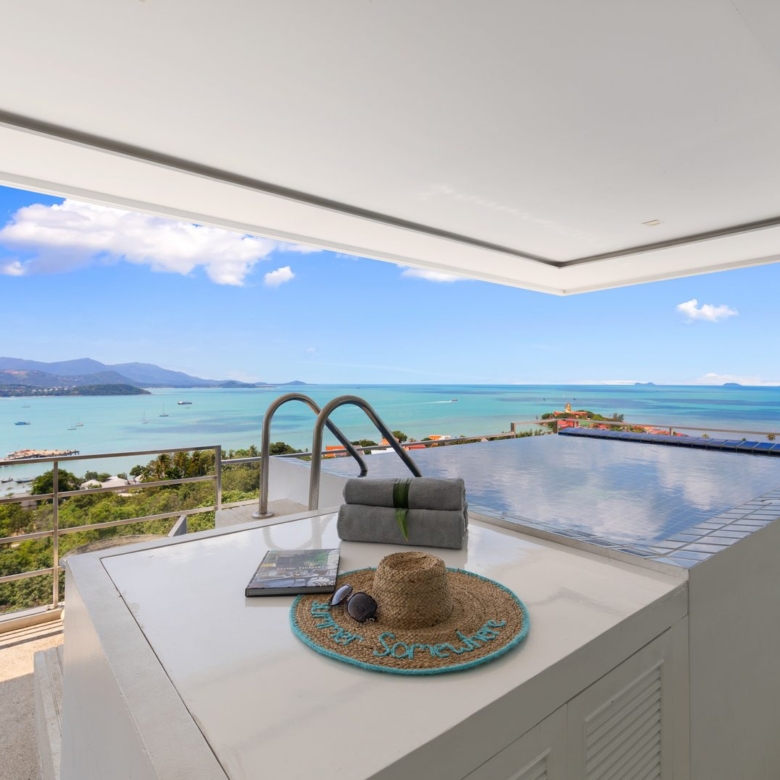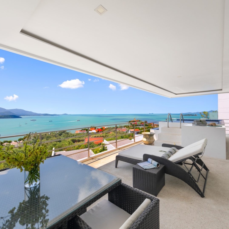 This gorgeous 3 bedroom penthouse is located on the Hills of Bangrak overlooking Bangrak Bay, Koh Samui. All bedrooms come with en-suite bathrooms and king size beds. The penthouse offers an open plan living experience with a large balcony that includes a private plunge pool, outdoor dining area and sun loungers that overlooks the entire Bangrak Bay. On the top of the project you find a rooftop restaurant and pool bar that offers the best sunset views.