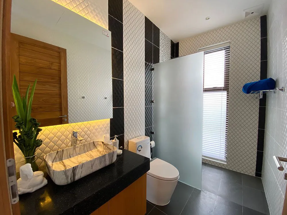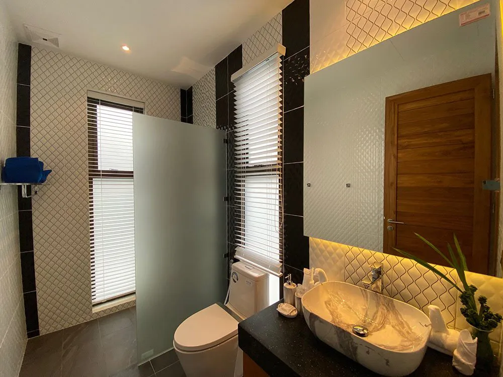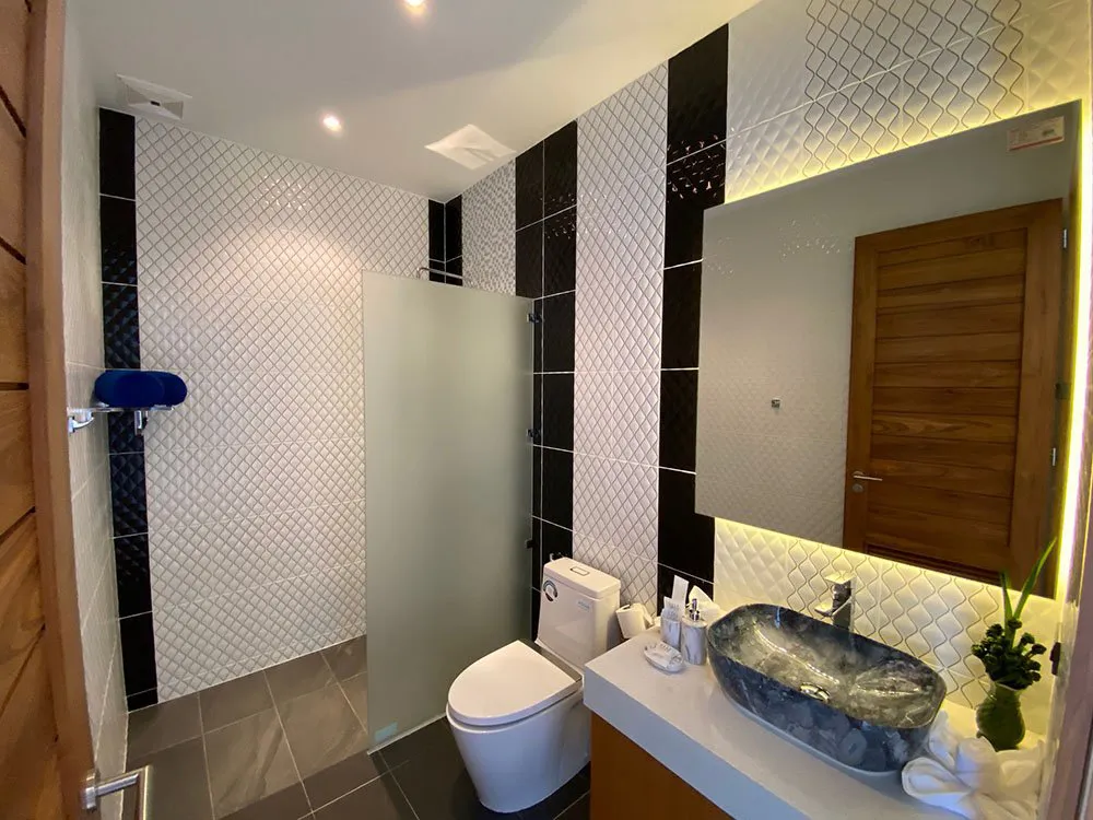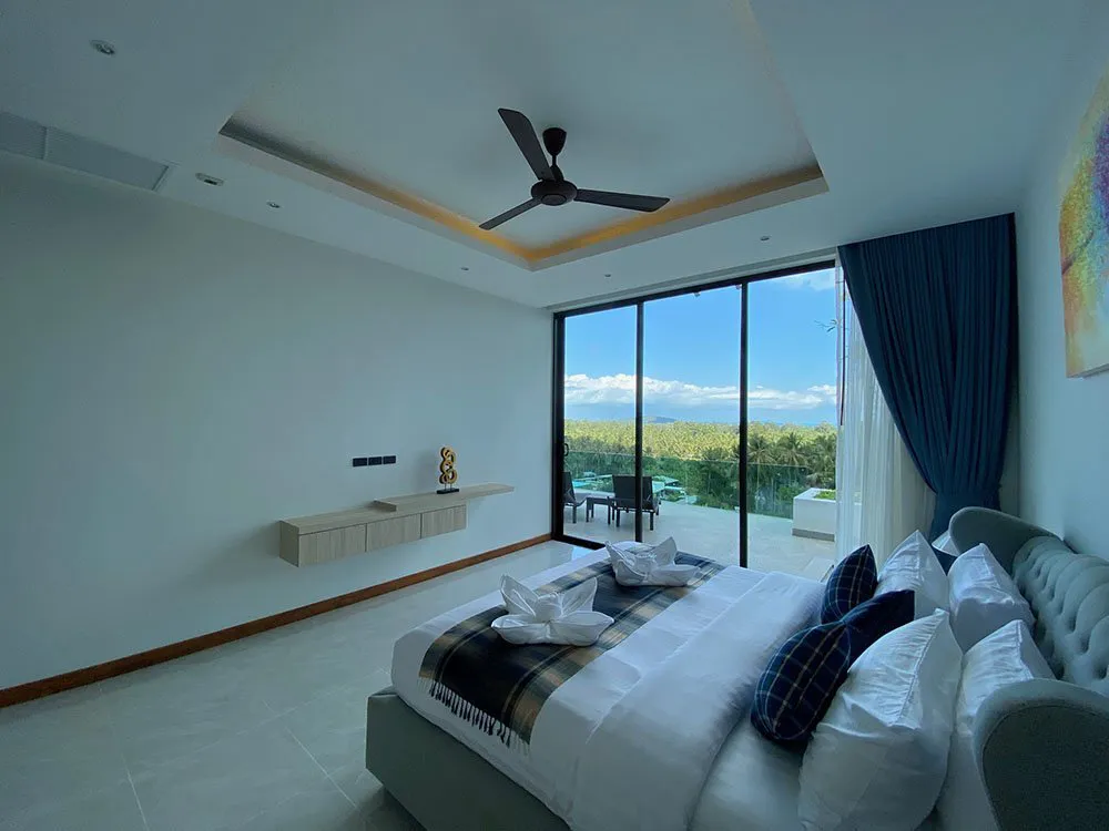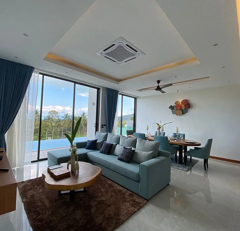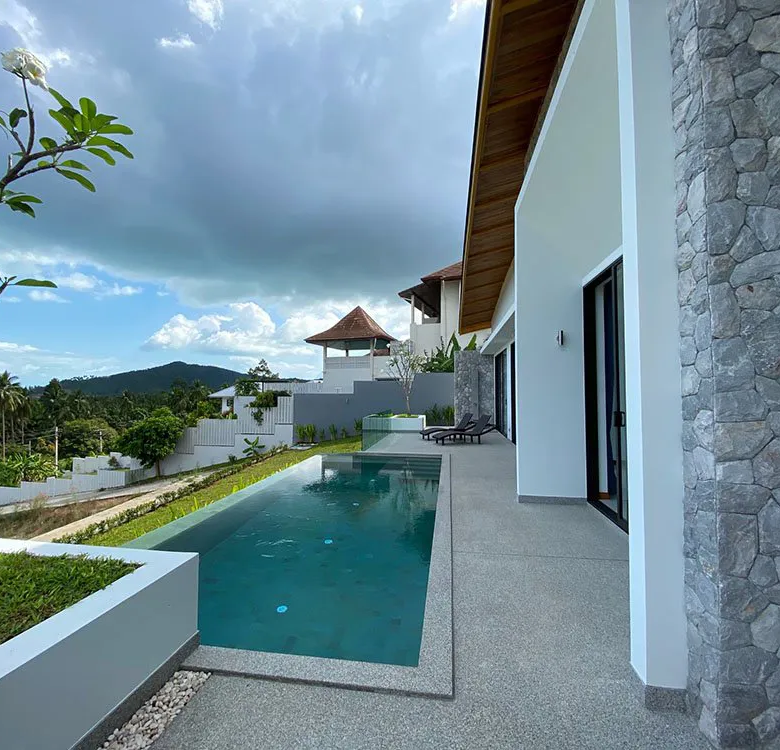 This gorgeous 3 bedroom villa is located in a new project on the hills of Mae Nam. Currently there are two 3 bedroom villas built, the rest is under construction. The project consists of 1, 2, 3, 4 and 6 bedroom villas. It offers a club house, community swimming pool, gymnasium, restaurant and 24/7 security.