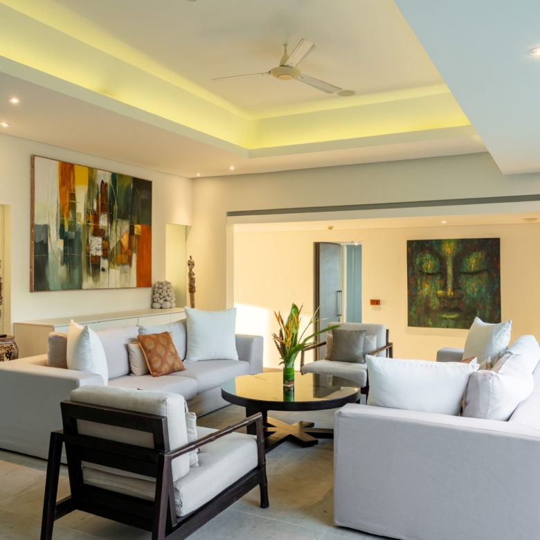 This Villa is a crowning jewel, offering an unparalleled experience at the estate’s highest point. This breathtaking villa boasts a luxurious infinity pool (6m x 15m) that seems to blend seamlessly with the horizon, offering endless sea views. Inside, you’ll find a fully equipped kitchen ready to handle any culinary adventure, a spacious lounge for relaxation, and a state-of-the-art in-villa sound system that ensures your favorite tunes follow you throughout. The private cinema and gym add to the exclusivity, while the BBQ area and rain showers enhance the outdoor experience in the meticulously landscaped garden. Two maid’s rooms and ample parking ensure convenience.