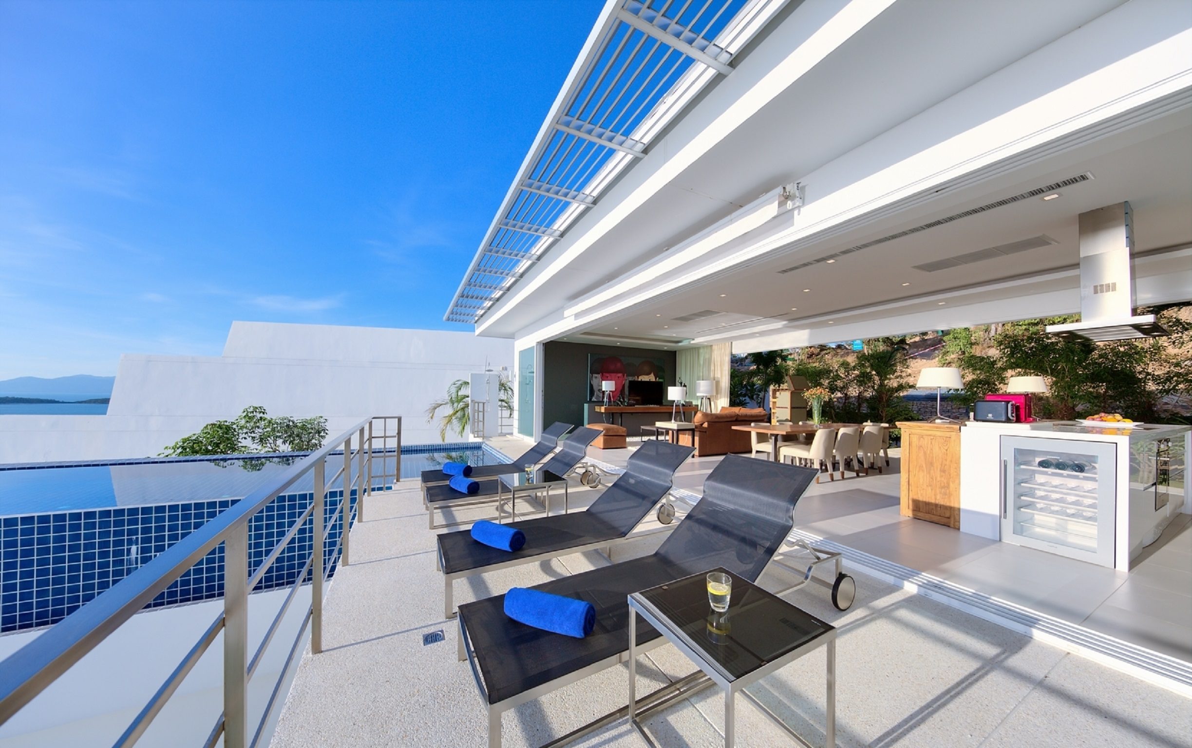 This stunning 4-bedroom villa is nestled in the prestigious Bangrak Hills, offering breathtaking full sea views. Built in 2015, this spacious 580 sqm property boasts four luxurious bathrooms and ample car parking for two vehicles. Each bedroom is designed with elegance and comfort in mind, creating a serene retreat. The villa features an open-plan living area that seamlessly integrates with the outdoors, providing a perfect blend of indoor and outdoor living. Enjoy the picturesque surroundings and tranquility from your private terrace and private pool, making this a perfect haven for relaxation and entertaining.
