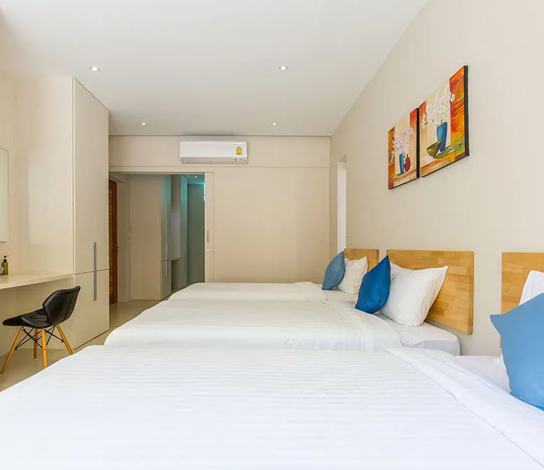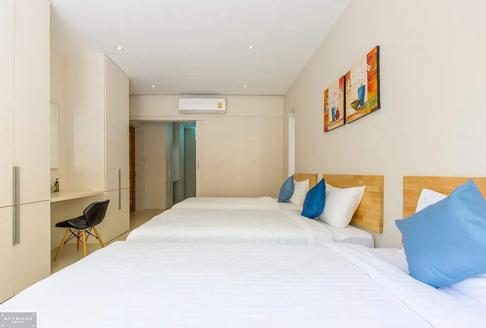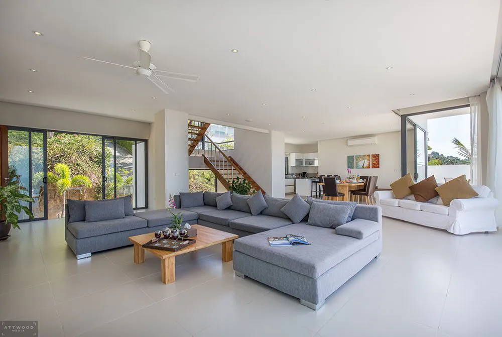 This stunning 6 bedroom villa is located on the hills of Bang Por, Koh Samui. On the ground floor you find 3 large bedrooms with their own bathrooms, a family room and covered car parking for minimum 2 cars. One of the rooms offers 3 single beds which is great for children or in-house staff. On the second floor you find the spacious living, dining and study area overlooking the large infinity pool and ocean. On the third floor you find the other 3 bedrooms with en-suite bathrooms that offers direct balcony access and spectacular sea views from each room. The project consists of 7 villas in total and offers a tennis court, fitness center, gated access, cctv and 24/7 security.