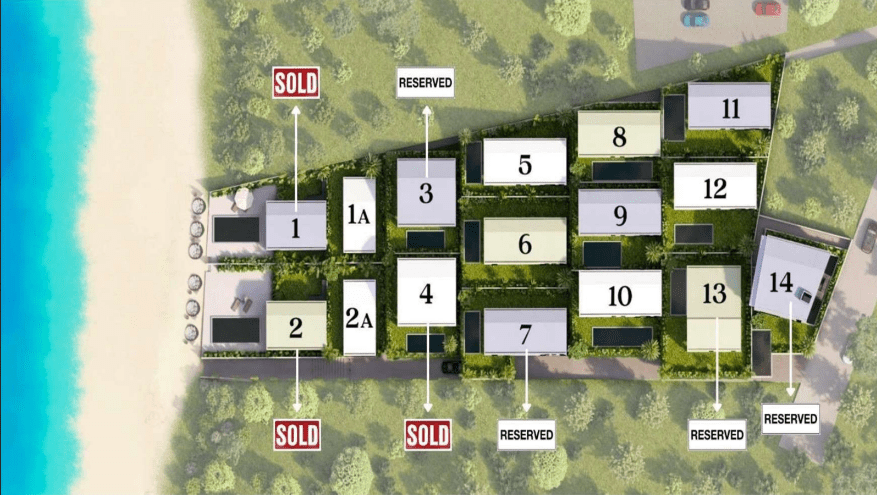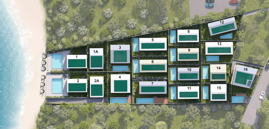 Experience beachfront luxury at its finest with our exclusive community of 16 all-inclusive villas located in the prestigious Lamai Peninsula, Koh Samui. Nestled opposite Silavadee Resort and near Banyan Tree & Marriott Renaissance, these villas offer stunning uninterrupted sea views on a serene, secluded sandy beach. 3 bedroom Villa priced from THB 19,000,000 each featuring solar power, a fully furnished package, top-of-the-line Panasonic appliances, and a Western-style kitchen. Enjoy spacious living areas, private infinity pools, and covered parking for two cars. With buildable spaces ranging from 180m² to 265m² and plot sizes from 180m² to 240m², your dream villa awaits.