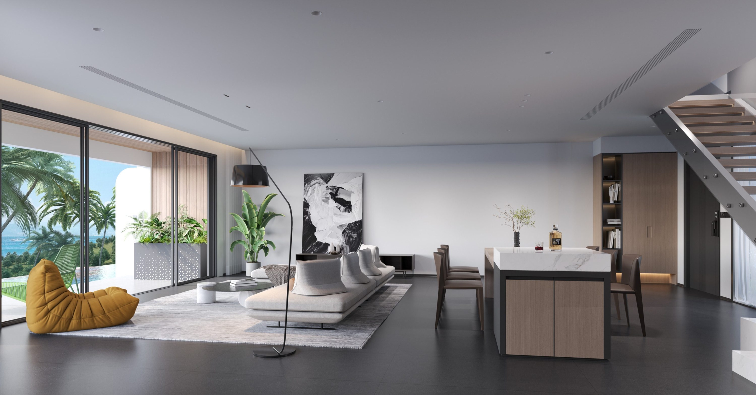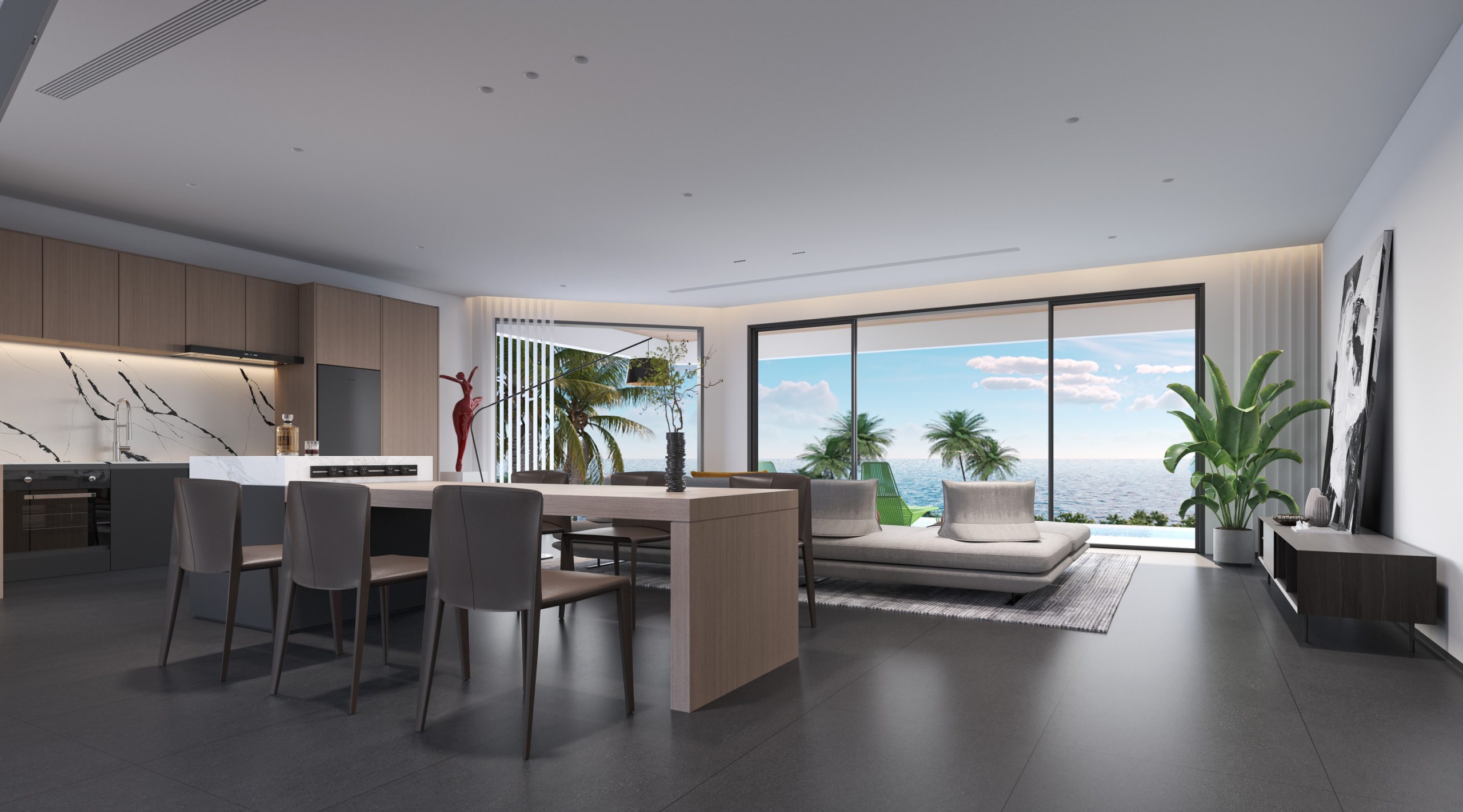 This sleek, modern semi-detached home offers the perfect blend of luxury and functionality. Spanning two stories, the property features two spacious bedrooms and three stylish bathrooms, all designed with contemporary elegance. The open-plan layout enhances the home’s airy feel, with expansive sea views visible from various vantage points. Enjoy the convenience of a dedicated parking space and the stunning infinity pool that complements the modern aesthetic of this chic residence.