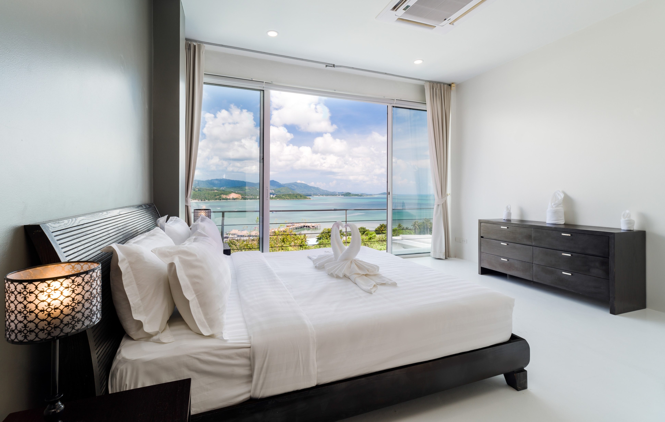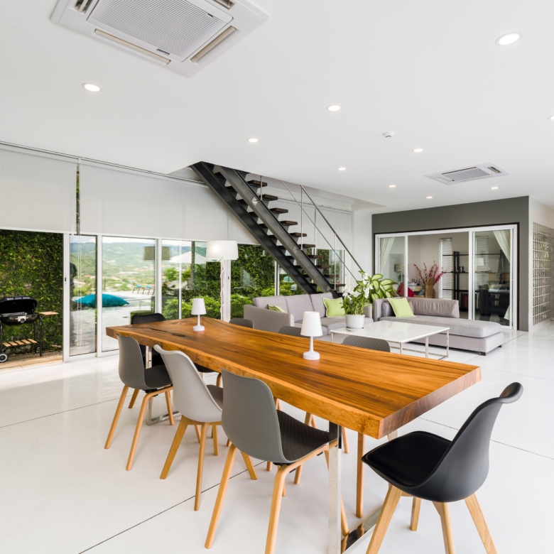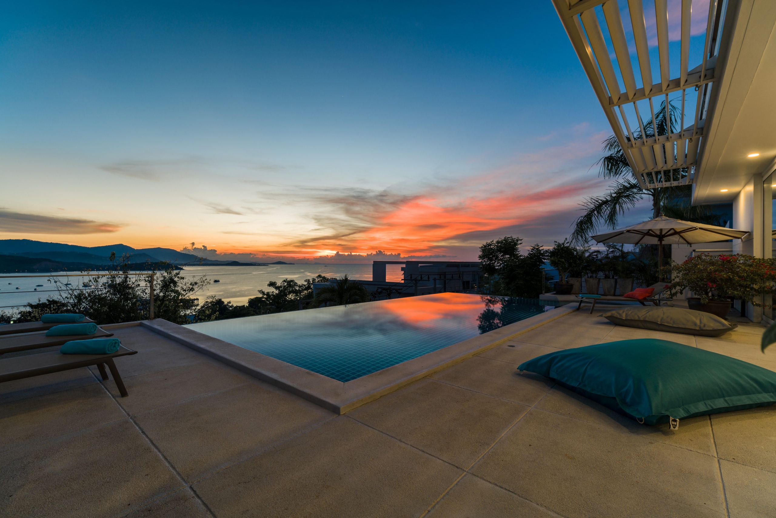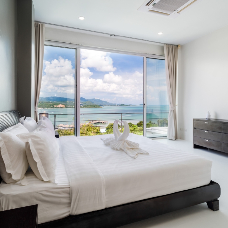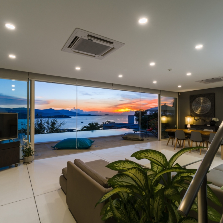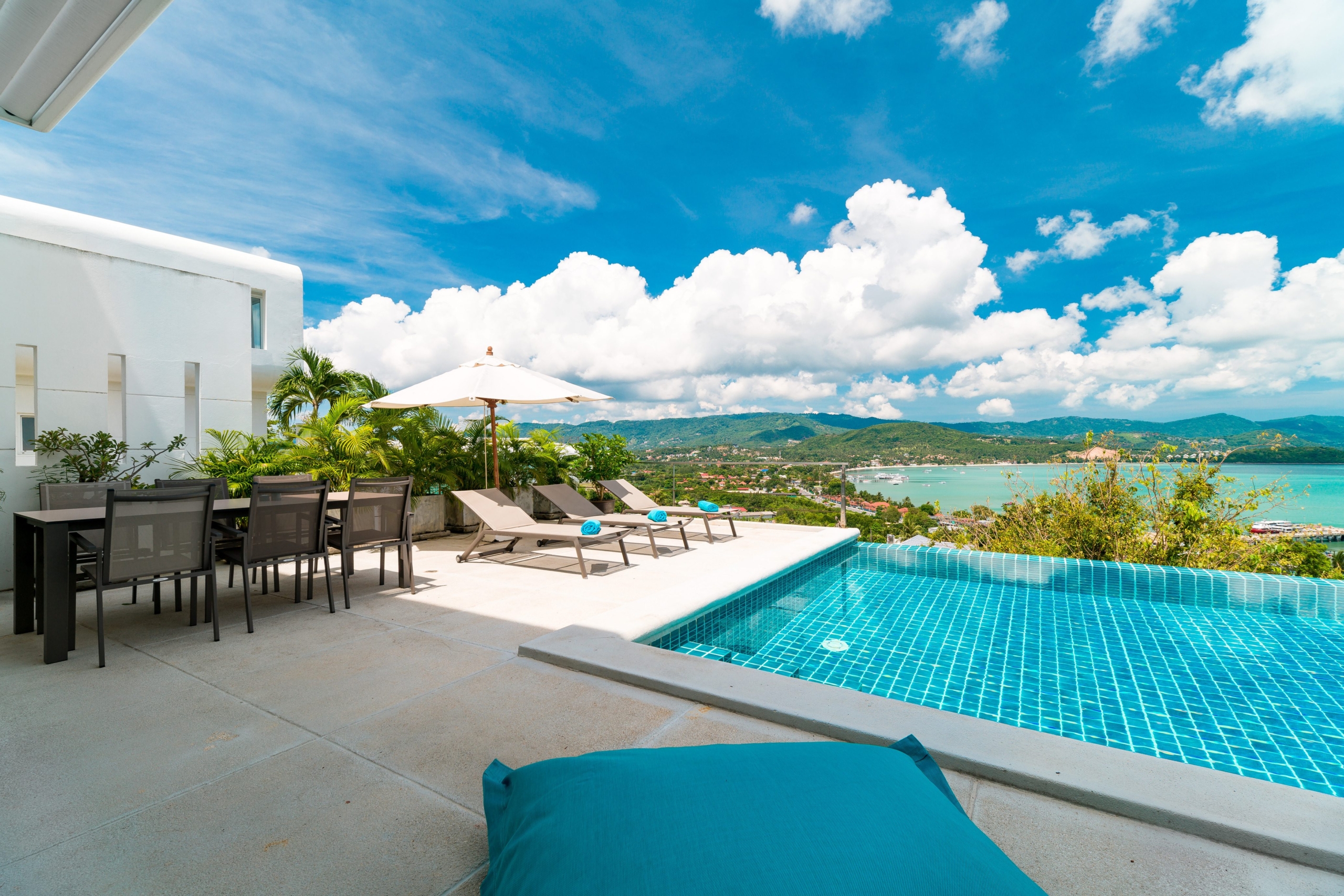 This stunning 3+1 bedroom villa is situated in the sought-after area of Bangrak, Koh Samui, offering unparalleled full sea views. Spanning 375 sqm, this villa features 3.5 bathrooms, including luxurious en-suite options. The spacious open-plan living area seamlessly integrates with the outdoor spaces, where you’ll find a private pool perfect for relaxing and entertaining. With convenient car parking for 2 cars, this villa provides both comfort and practicality in a breathtaking setting.