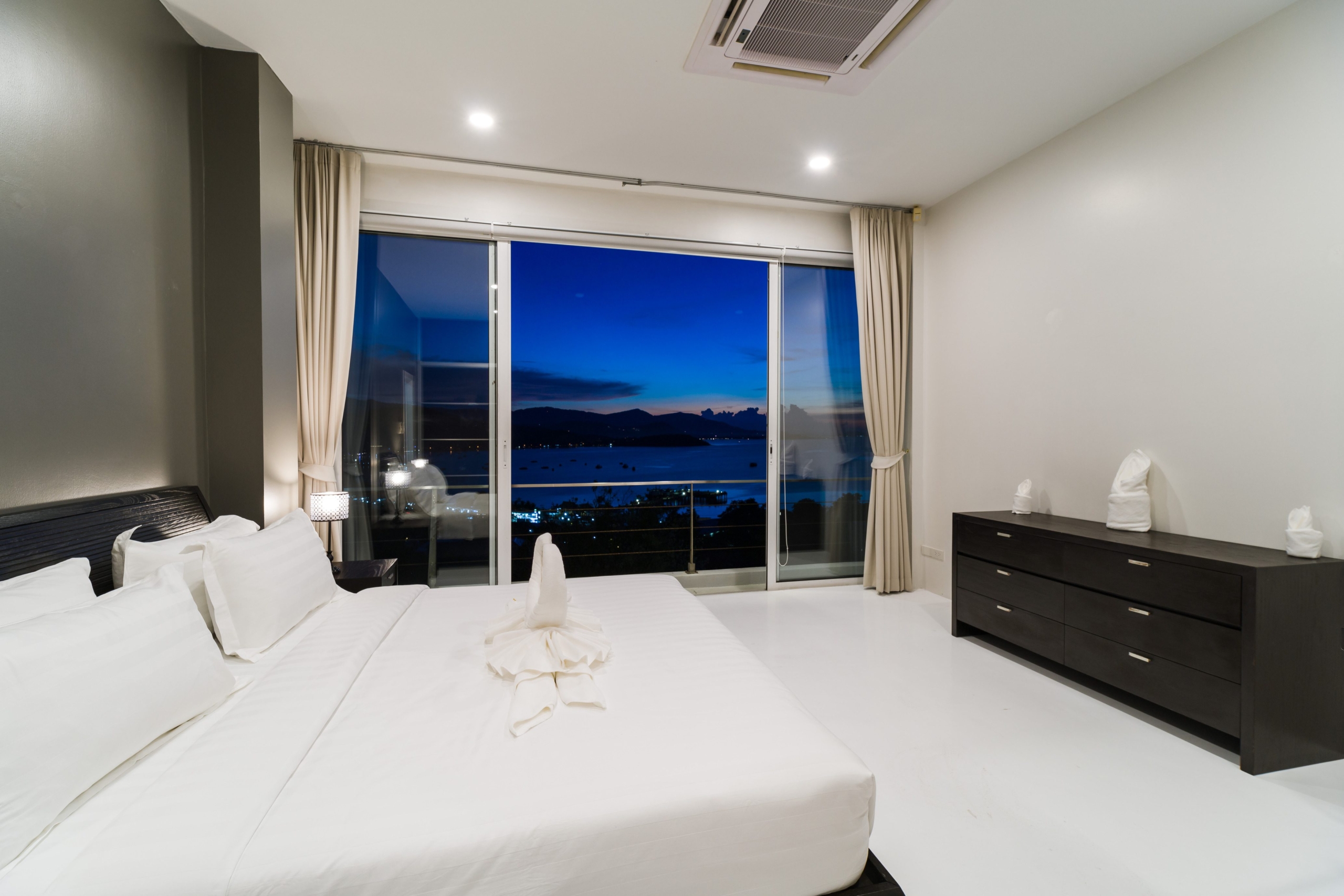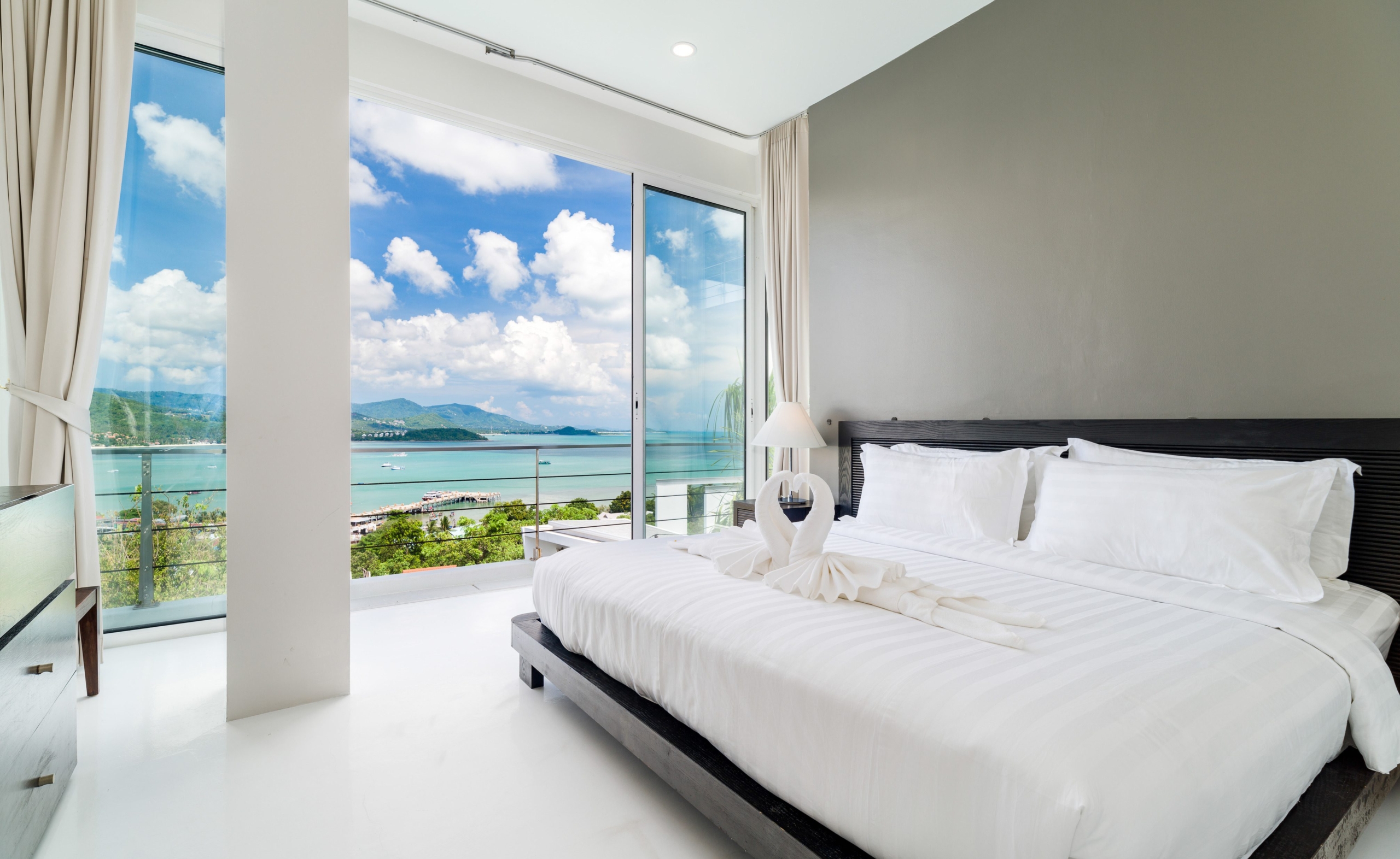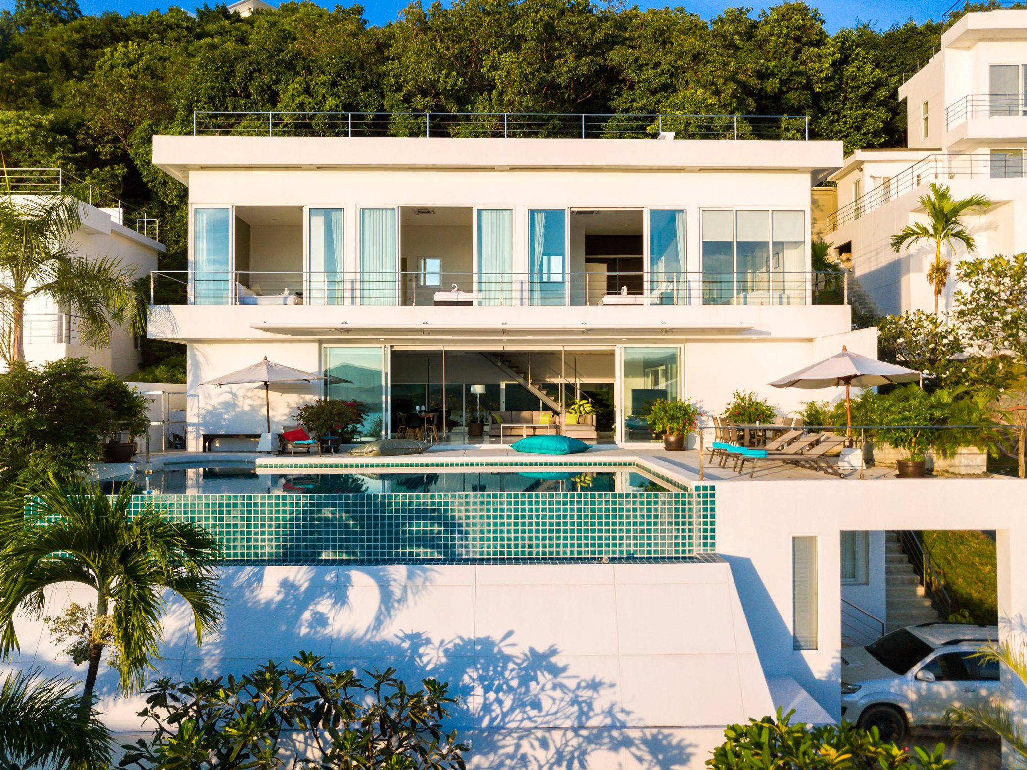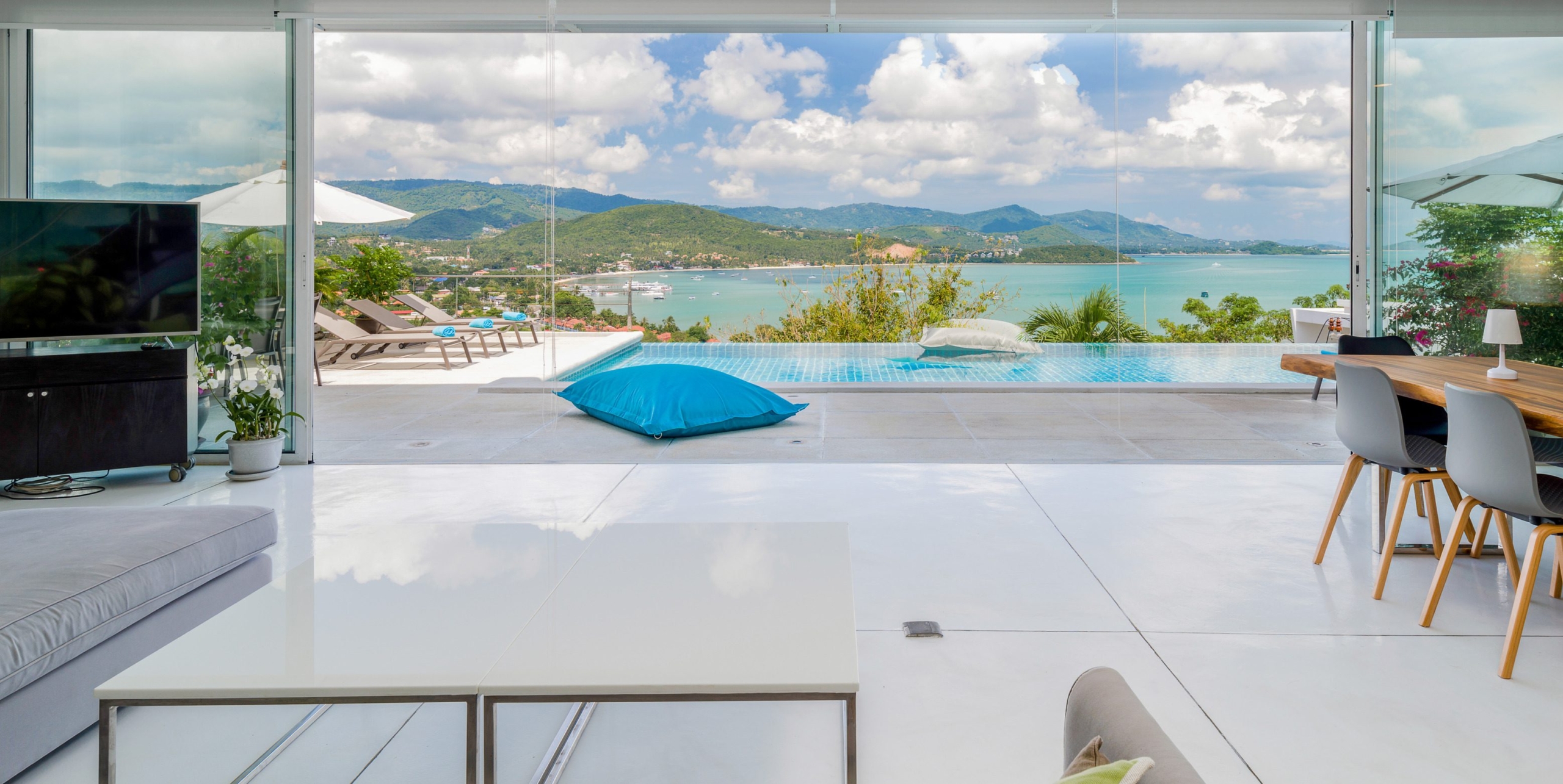 This stunning 3+1 bedroom villa is situated in the sought-after area of Bangrak, Koh Samui, offering unparalleled full sea views. Spanning 375 sqm, this villa features 3.5 bathrooms, including luxurious en-suite options. The spacious open-plan living area seamlessly integrates with the outdoor spaces, where you’ll find a private pool perfect for relaxing and entertaining. With convenient car parking for 2 cars, this villa provides both comfort and practicality in a breathtaking setting.